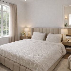 מצעים איכותיים יוצרים חוויית שינה נעימה ומפנקת. הם משלבים מגע רך עם מראה אלגנטי, משלימים את עיצוב חדר השינה, ותורמים לאווירה רגועה ומסודרת.