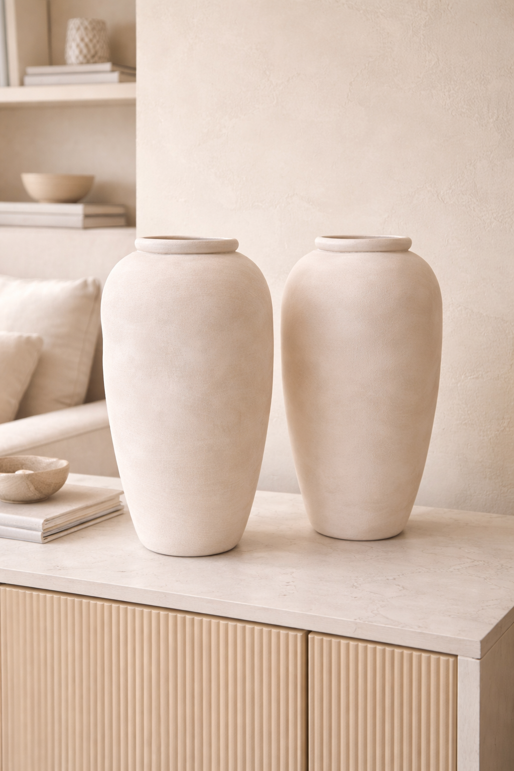 סט 2 כדים דמוי אבן בצבע בז – גדול ובינוני