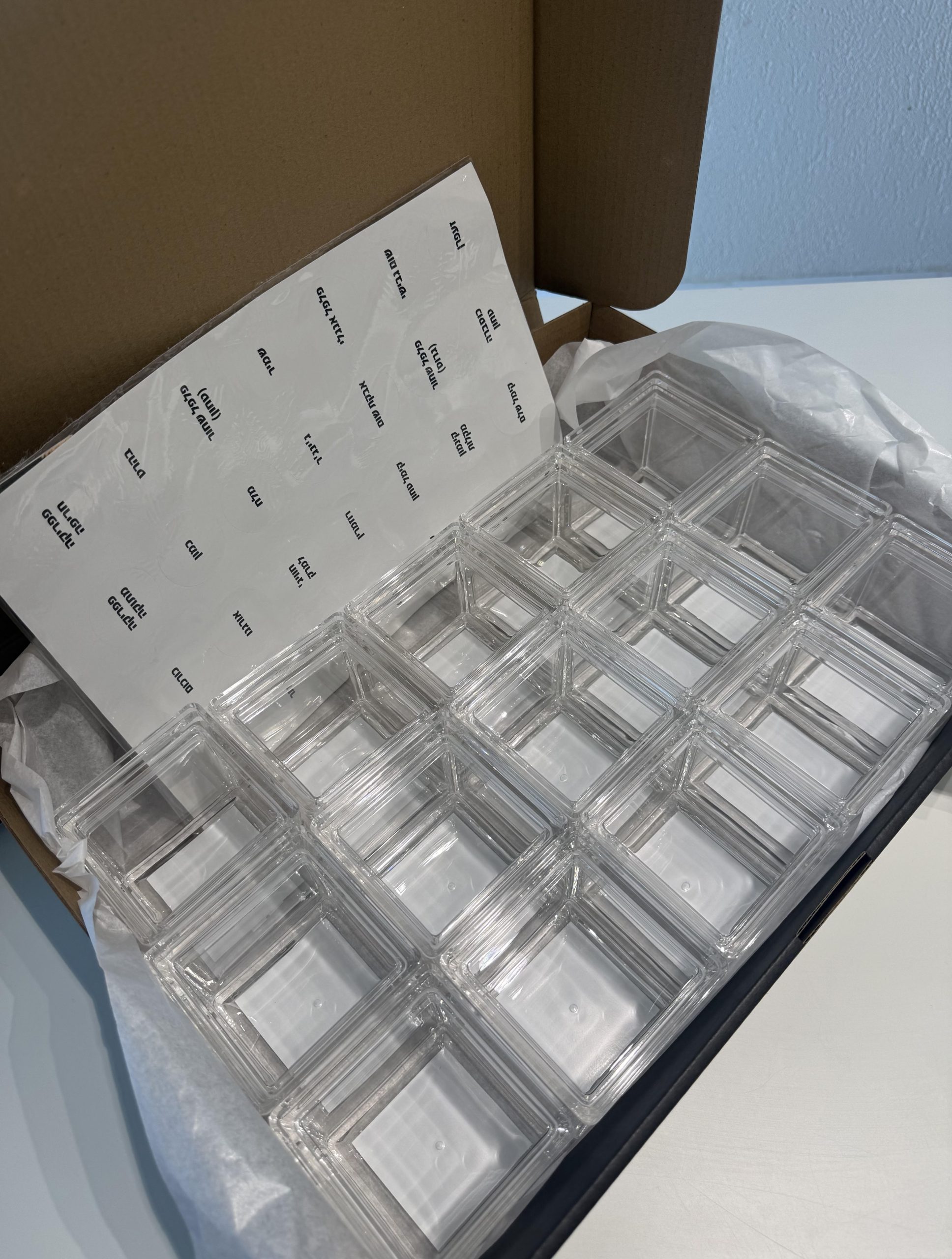 המארז מגיע עם חבילת 56 מדבקות לתבלינים לבנות בצורת עיגול.