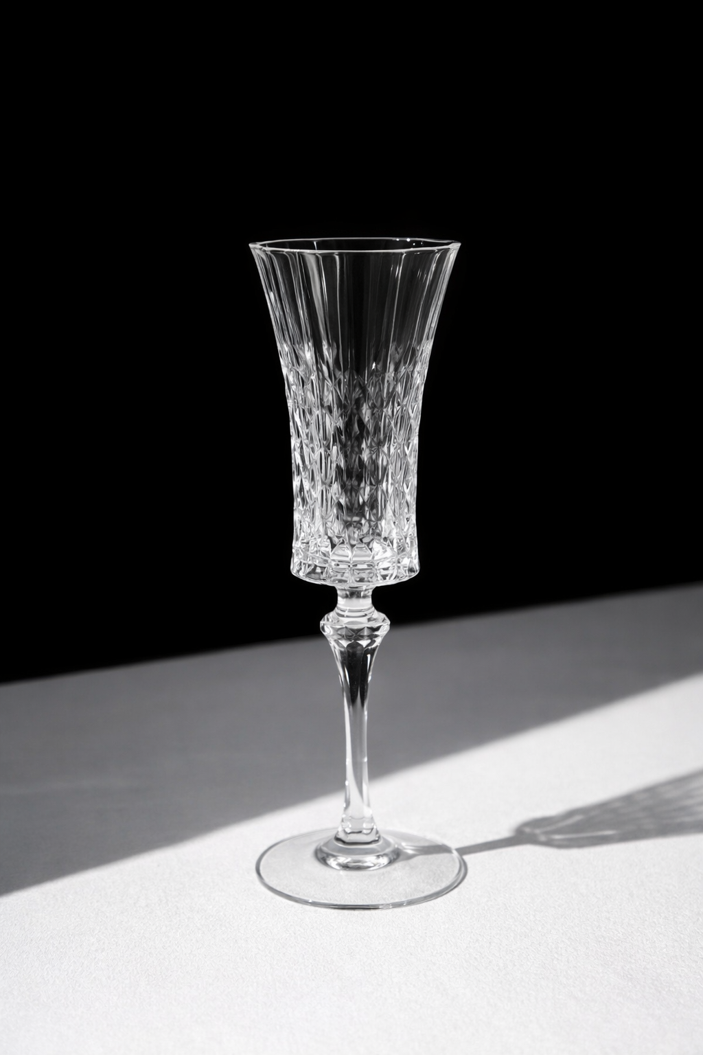 כמות של כוס קריסטל - יין , שמפנייה , ללא רגל