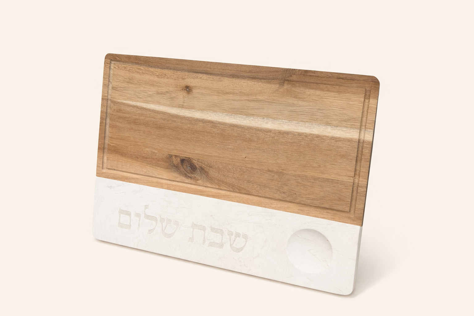 / מגש שבת עץ בשילוב שייש עם כיתוב שבת שלום