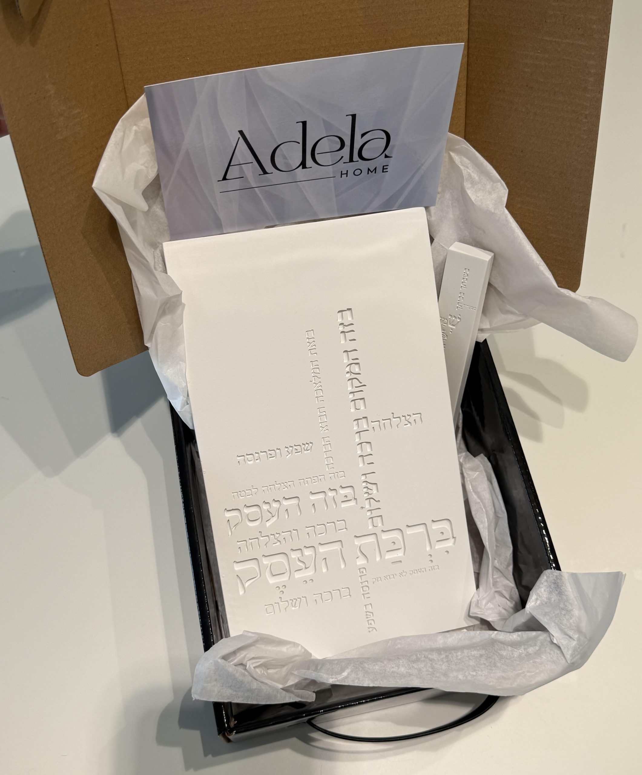 ומזוזה צבע לבן מבטון עם כיתוב שמע ישראל : המתאימה לקלף 12