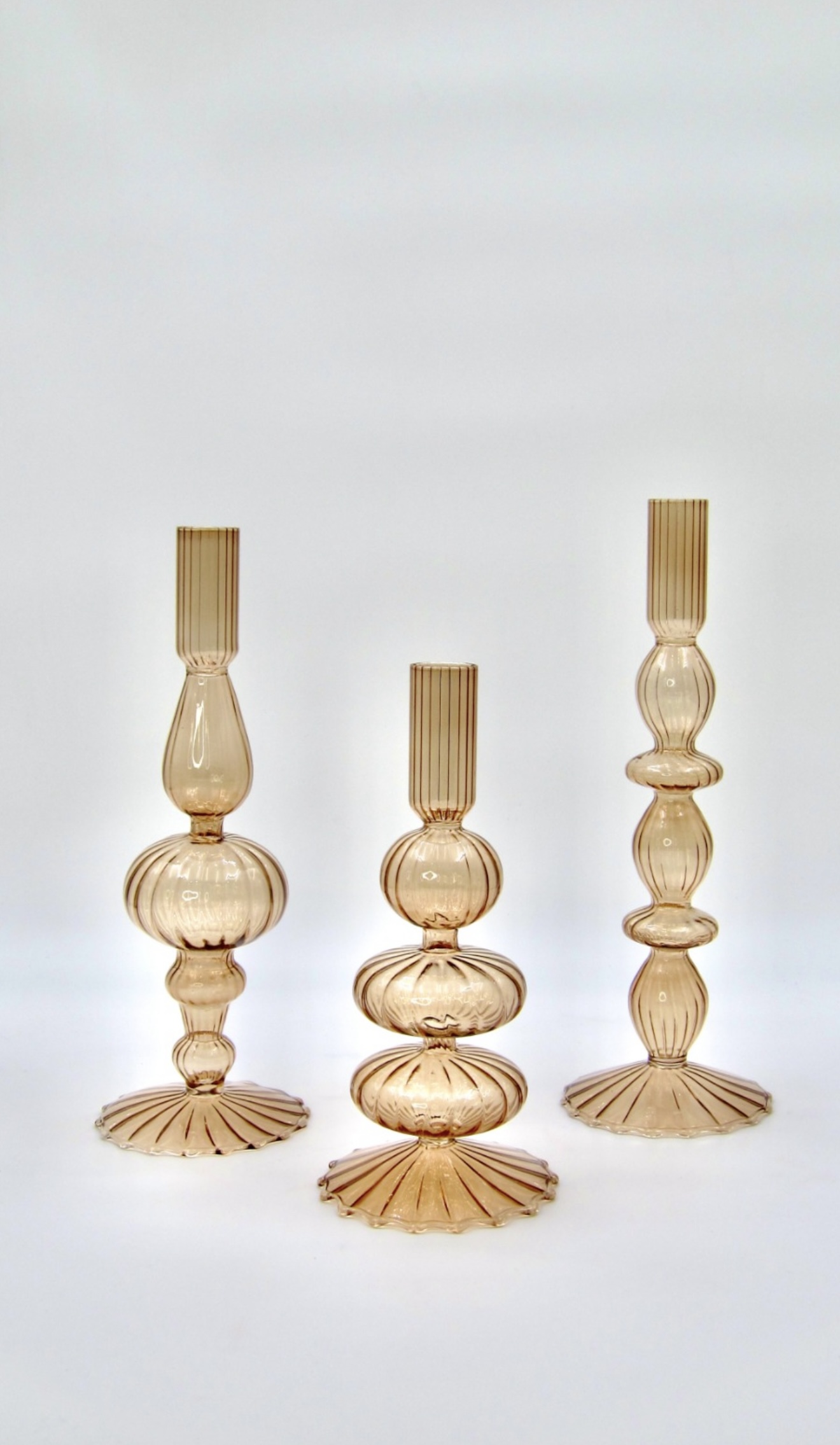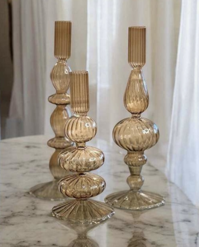 שלישיית פמוטים מזכוכית בגוון חום
