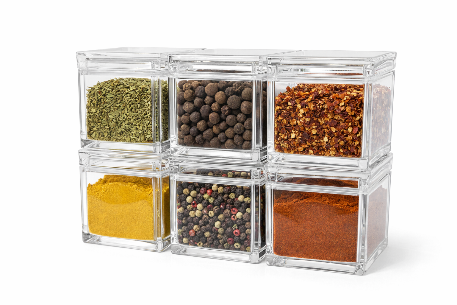 קופסת אחסון מאקריל 300 מ״ל, אידיאלית לאחסון תבלינים – פריט חובה בכל בית.