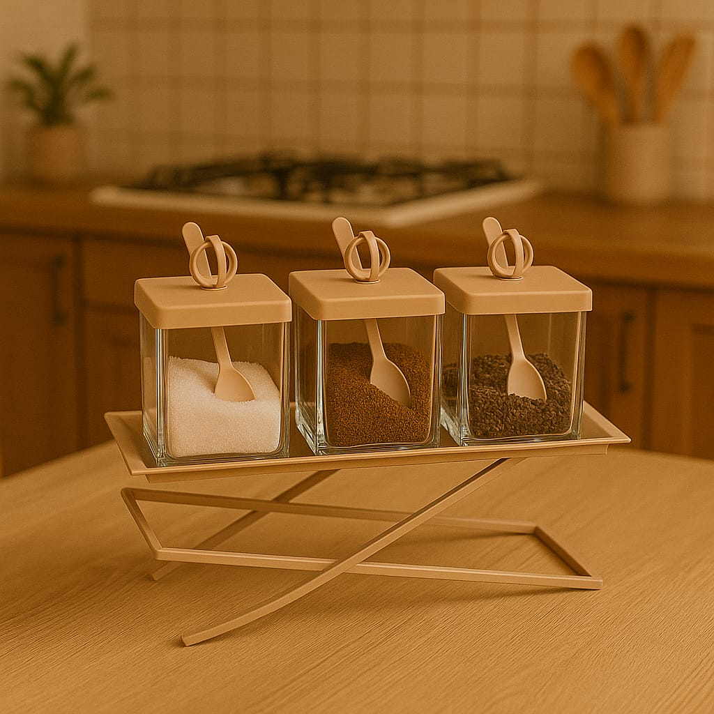 הסט מתאים לאחסון ולהגשה של סוכר, קפה, תה, תבלינים או ממרחים, ומשתלב בצורה .