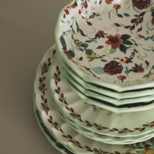 סט צלחות וינטג' פרחים ירוק – 4 סועדים -12 חלקים