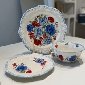 סט צלחות ויטנג פרחוני כחול – 4 סועדים 12 חלקים