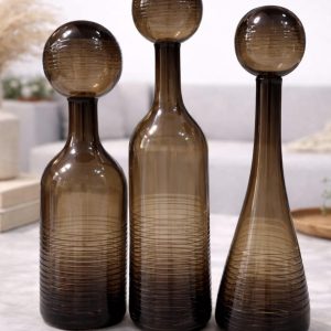 סט 3 בקבוקי זכוכית עם חריטה צבע חום